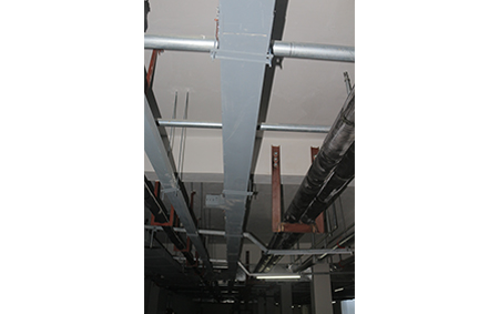 1.一般情况下不在施工现场制作桥架。由于特殊原因必需时,可利用现有的桥架改制非标准弯通和变径直通。改制和切断直线段桥架时,均不得用气、电焊切割,应用专用切割工具。改制的桥架必须平整,及时补漆,面漆颜色应与其它桥架相近。因为新建建筑物里,桥架安装一般都在混凝土结构工程完成数月甚至一年之后进行,混凝土收缩逐渐减小。伸缩量一般不会超过建筑物伸缩缝宽L。